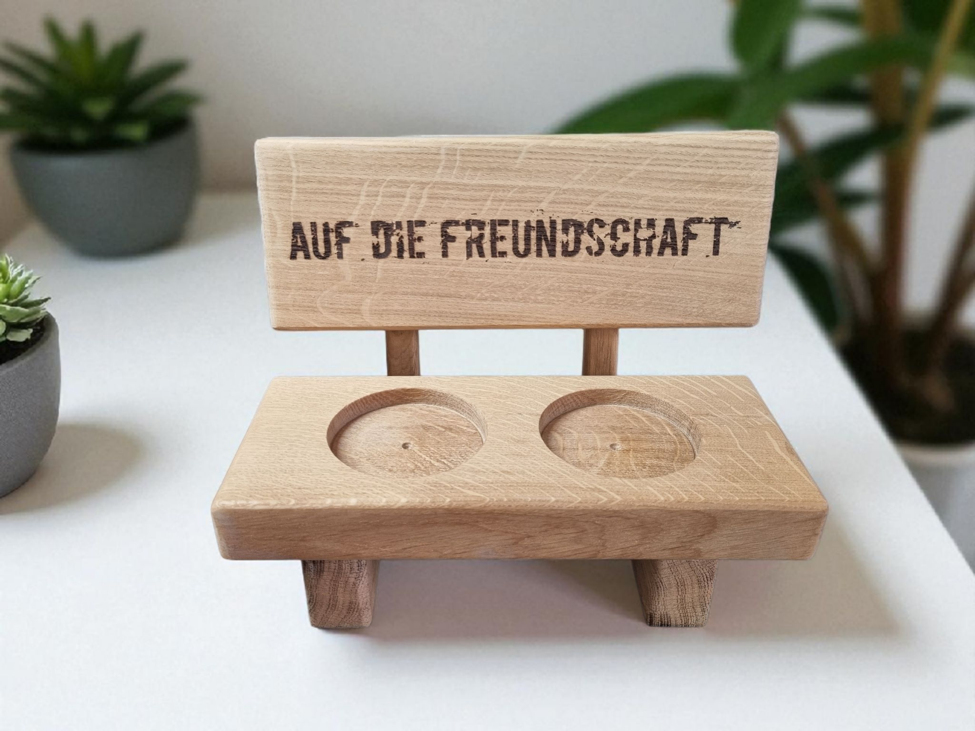 Bierbank für 2 Gläser 0,5l (inklusive) aus Eichenholz gefertigt mit Lasergravur.
